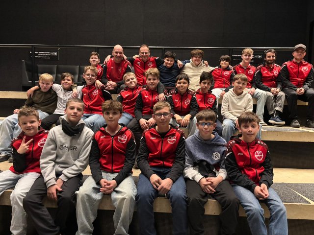 Danach ging es zusammen auf die Tribüne, um sich das Spiel anzuschauen.