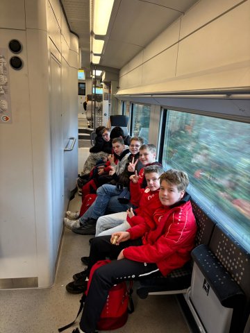 Bei der Rückfahrt hatte die Bahn 20 Minuren Verspätung, was die Trainer vor die Herausforderung stellte die Jungs ruhig zu halten.